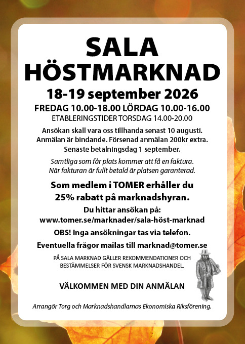 Som medlem i TOMER erhåller du 25% rabatt på marknadshyran.